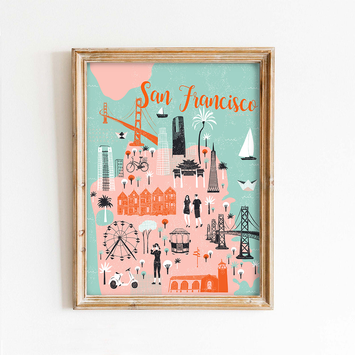 San Francisco Illustrated Map Art Print by Maria Rabinky Fine